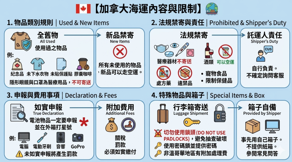 *加拿大境內陸運超材、超重、非紙箱包裝(例如:行李箱、雪板袋等)及其他可能產生的附加費用請參考此連結